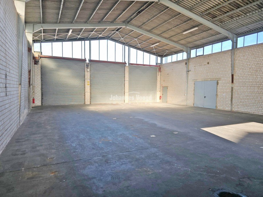 Zur Vermietung steht eine sehr gepflegte Halle mit mehreren Toranlagen. Sie hat eine Größe von ca. 300 m². Auf Wunsch können auch weitere benachbarte Halleneinheiten angemietet werden. Die lichte Höhe beträgt 5,50 m.